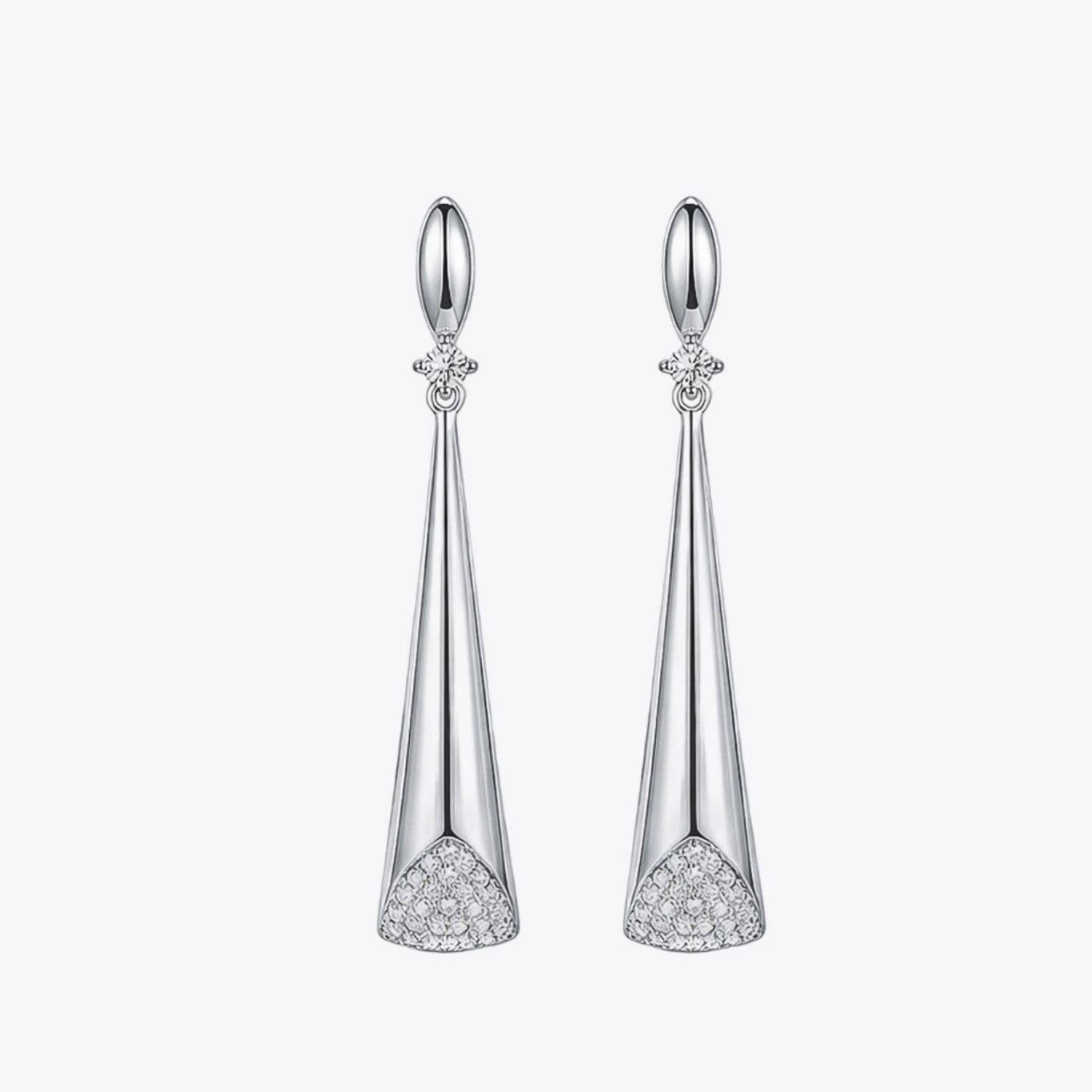 The pendant features an elegant open loop lined with precisely set baguette stones that reflect light with refined brilliance. A single dangling pearl adds movement, softness, and classic charm, creating a perfect balance between structured design and feminine elegance. Complemented by matching circular halo stud earrings, the set delivers a cohesive and polished look. Finished in high-polish sterling silver, it offers a luxurious shine suited for both special occasions and elevated everyday wear.