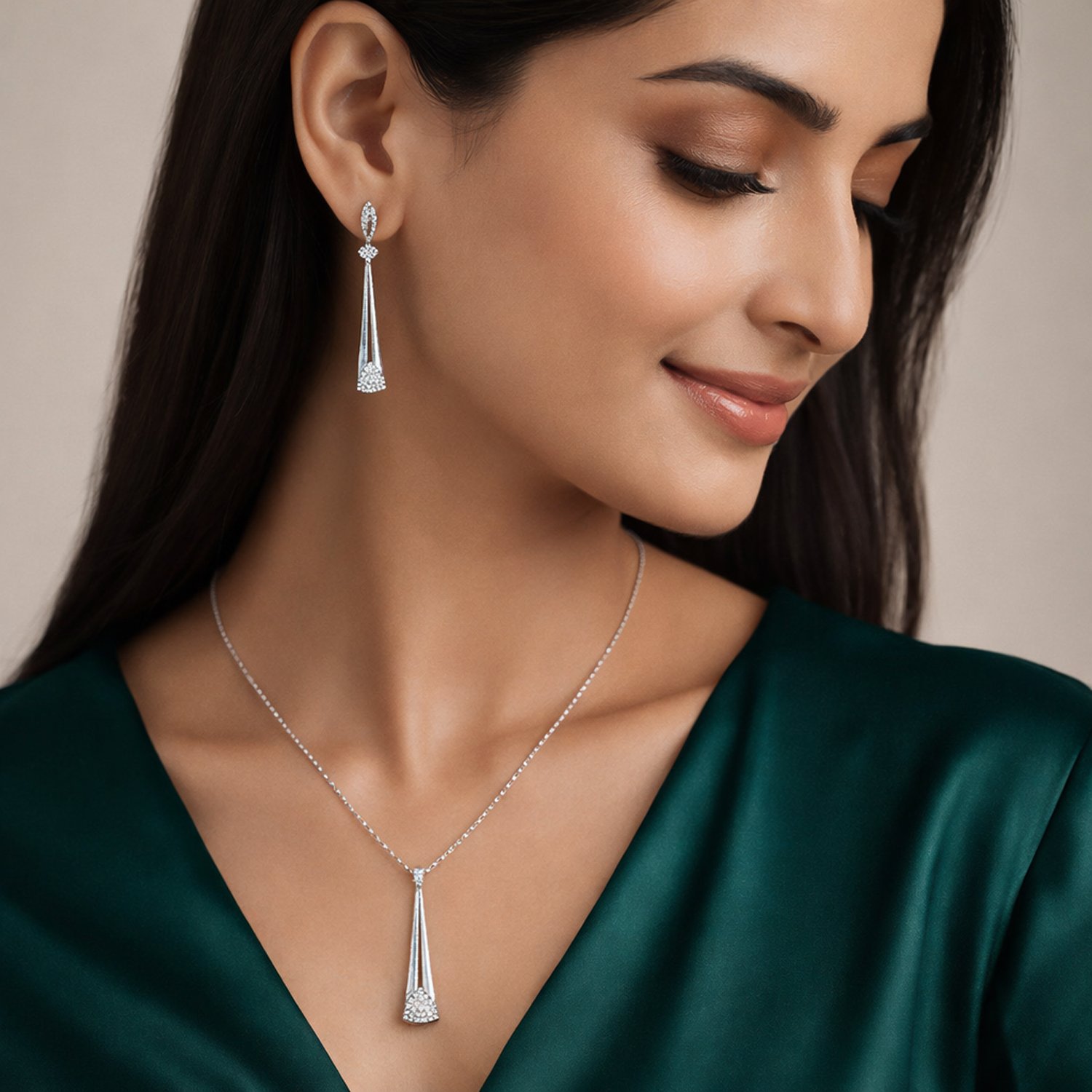 Perfect for weddings, anniversary dinners, evening receptions, or sophisticated gatherings, this timeless set adds effortless grace and sparkle to any outfit.
