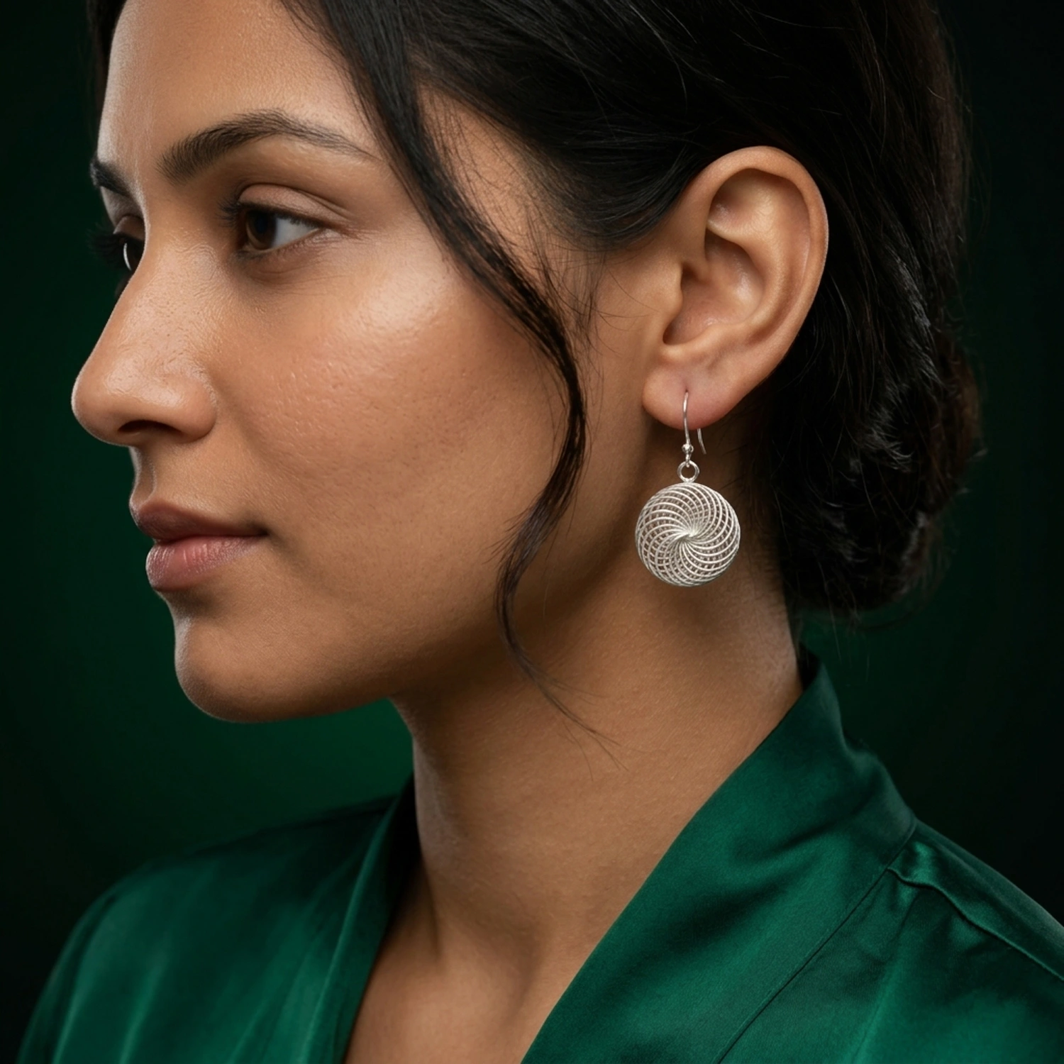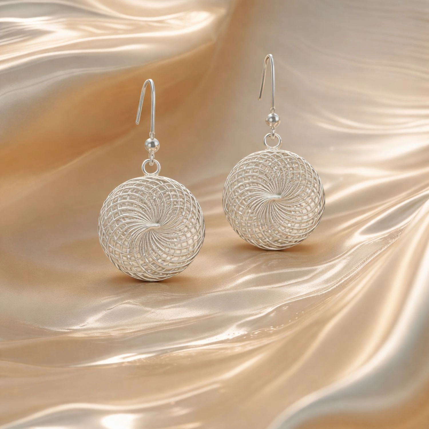 Elegant dangle earrings crafted from premium 925 silver, featuring a mesmerizing openwork spiral design.