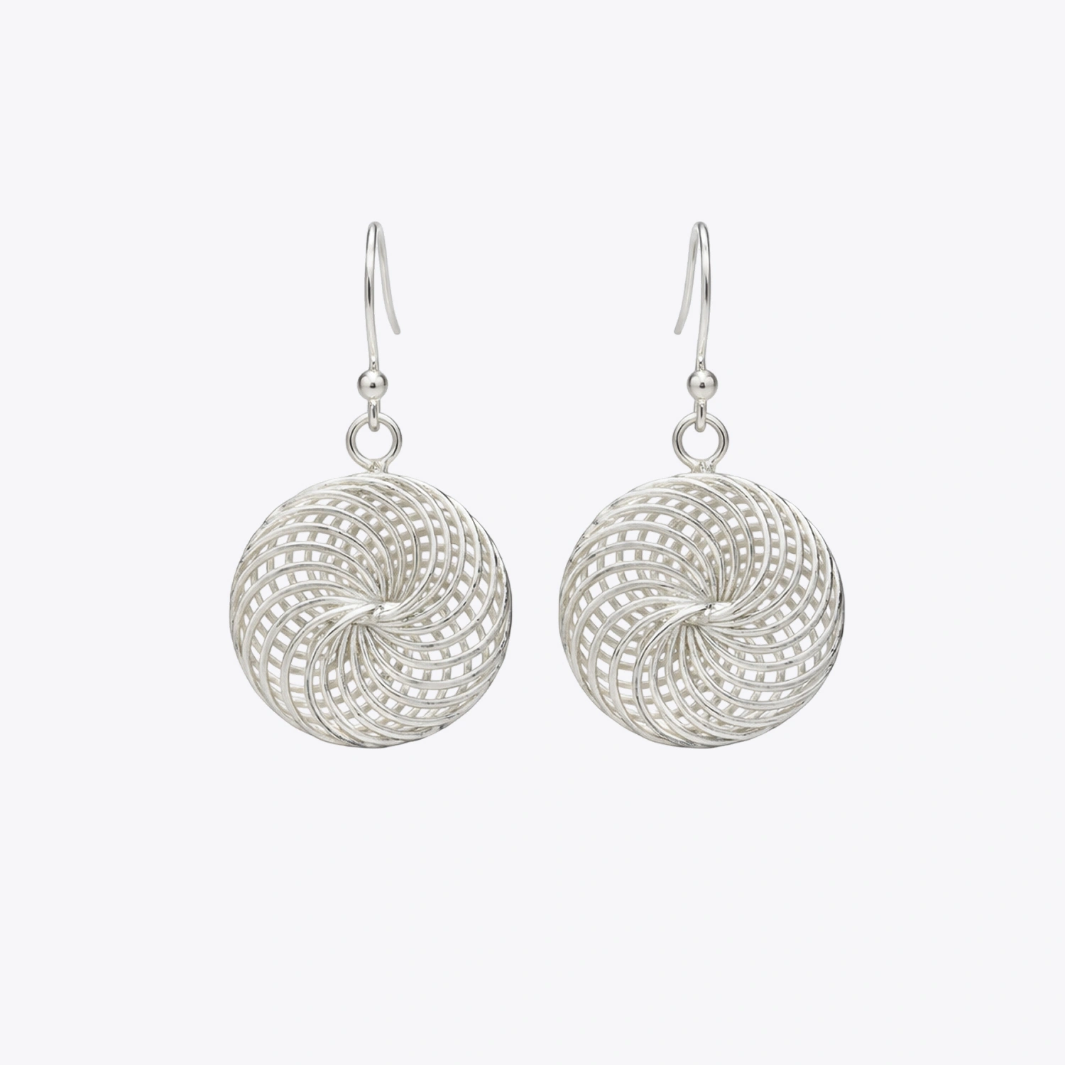ALENCIA 925 Silver Woven Spiral Drop Earrings are elegant dangle earrings crafted from premium 925 sterling silver, featuring a mesmerizing openwork spiral design that adds a touch of artistic sophistication.