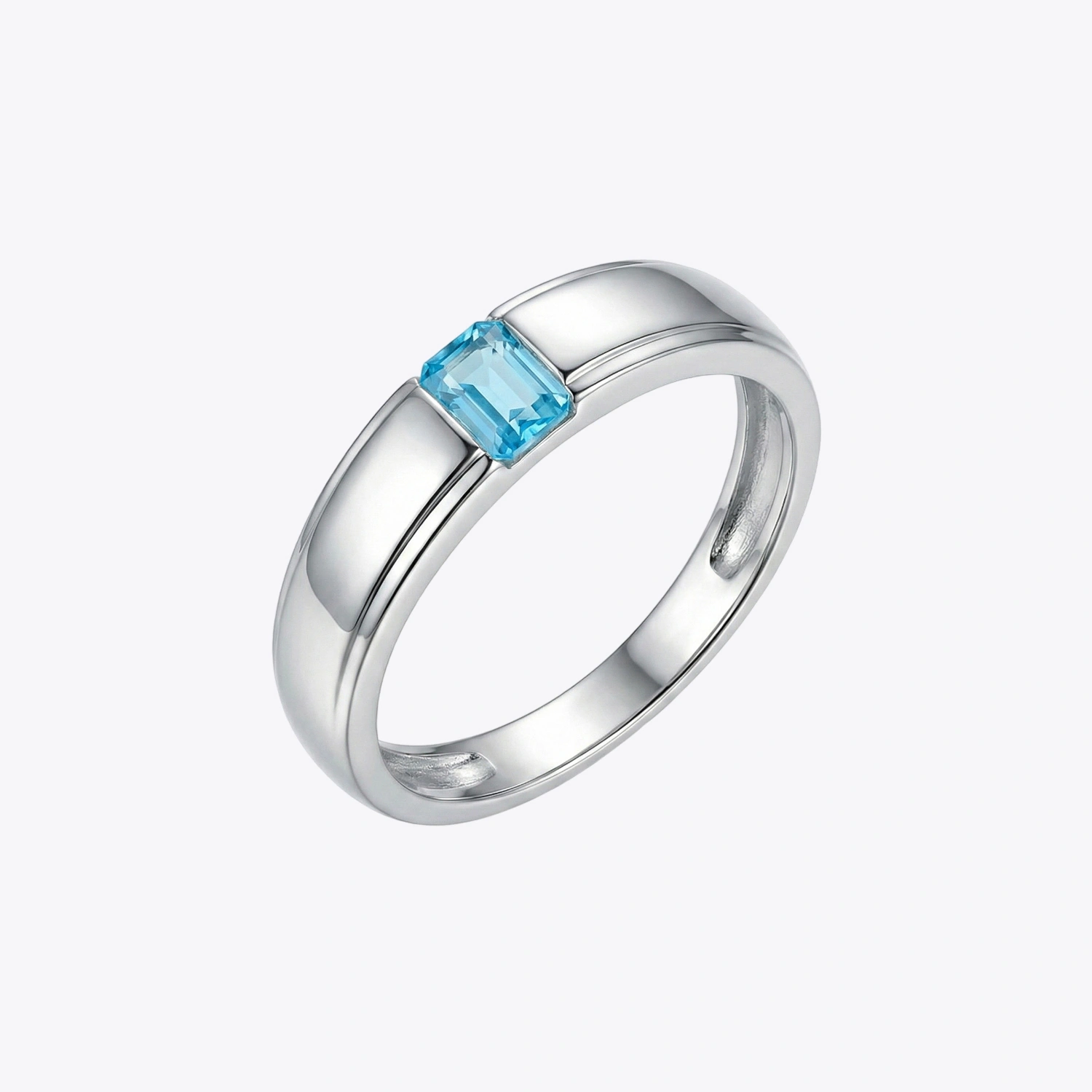 • Rectangular emerald-cut light blue gemstone