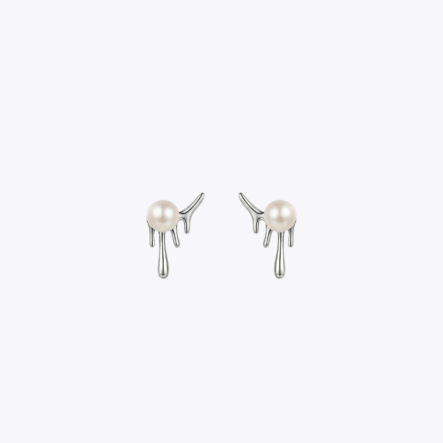 Design: Fluid melting silver silhouette with pearl drip earrings