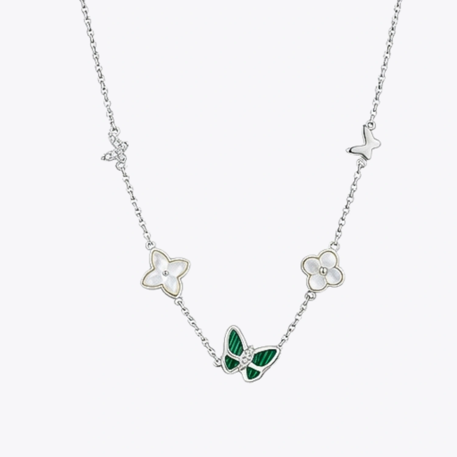 The Alencia Malachite Bloom 925 Silver Set is a stunning 925 sterling silver jewelry suite designed to blend natural gemstone beauty with refined contemporary elegance. Featuring a beautifully coordinated pendant necklace, drop earrings, and adjustable ring, this set showcases a graceful floral clover motif that feels sophisticated, modern, and effortlessly wearable.