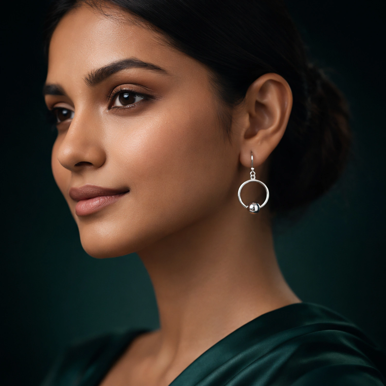 • Slim circular hoop with centered silver orb