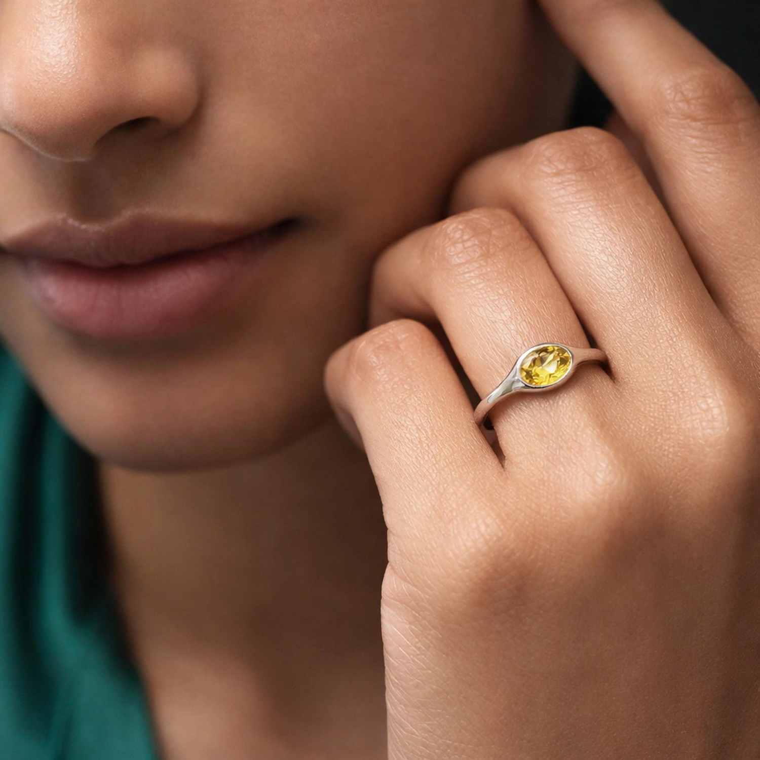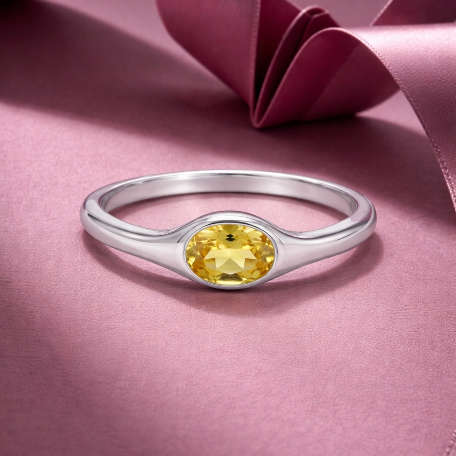 The Aurelia Oval Solitaire Yellow Ring is a delicate 925 sterling silver piece featuring a vibrant oval yellow gemstone set in a sleek, minimal band for effortless everyday elegance.