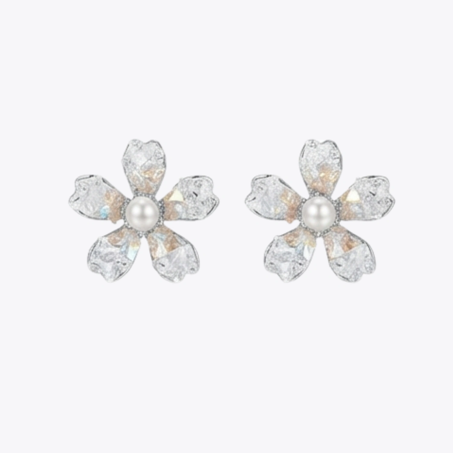 This luxurious four-piece set features beautifully crafted floral motifs with shimmering crystalline petals paired with soft luminous pearls. The blossom-inspired detailing creates a timeless feminine elegance, while the square-link chain adds a clean contemporary finish.