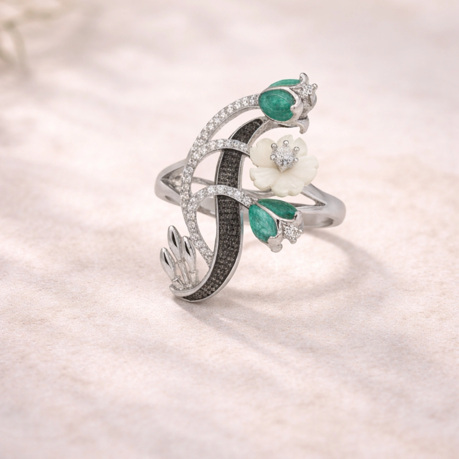 Inspired by nature’s blooming beauty, this ring reflects a perfect blend of vintage floral artistry and modern elegance. The high-polish sterling silver finish enhances the intricate enamel work, while the emerald tones symbolize freshness, sophistication, and timeless charm. Every detail is carefully crafted to create a graceful statement piece that feels both unique and luxurious.