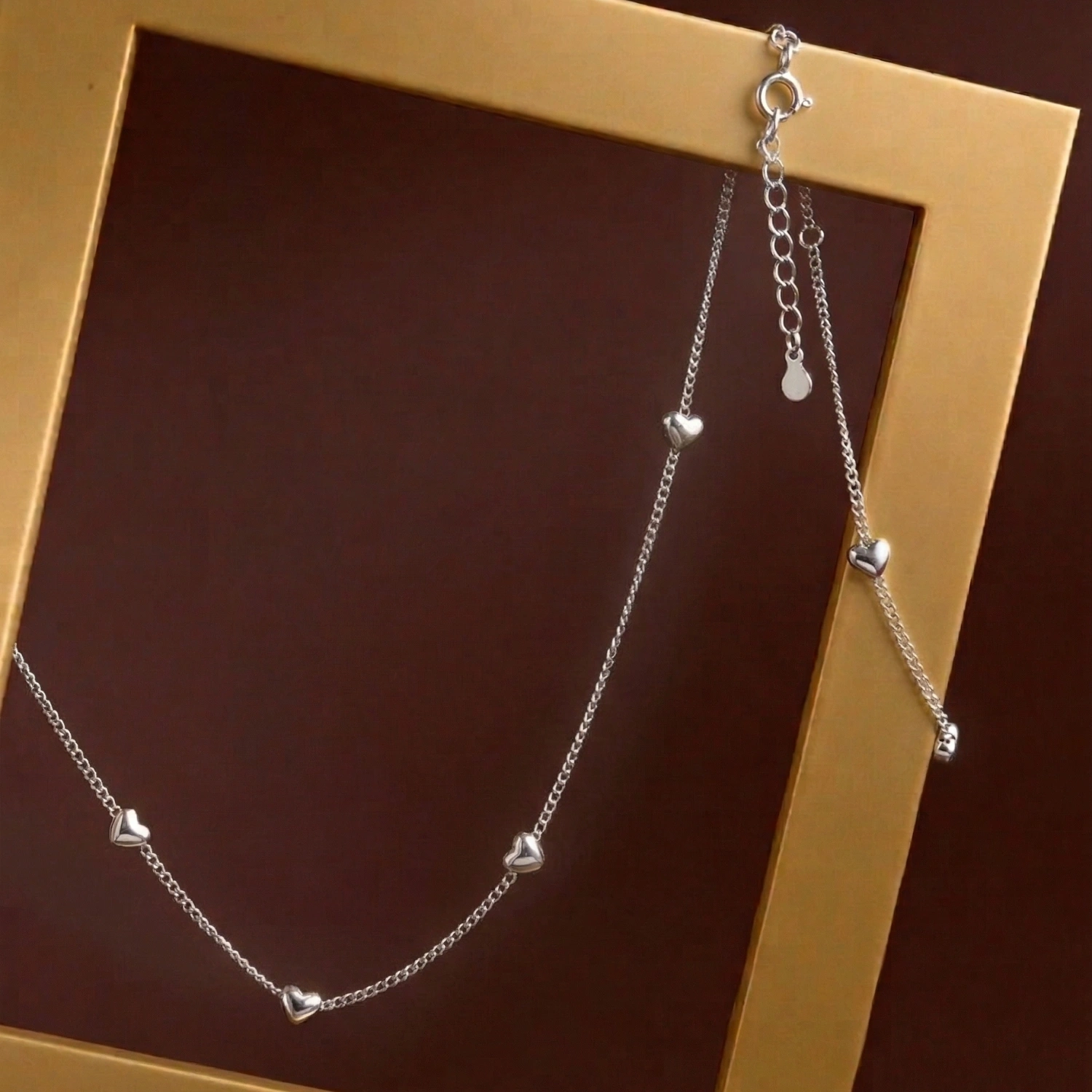 A delicate 925 silver chain adorned with multiple small, polished heart charms for a romantic and timeless look.