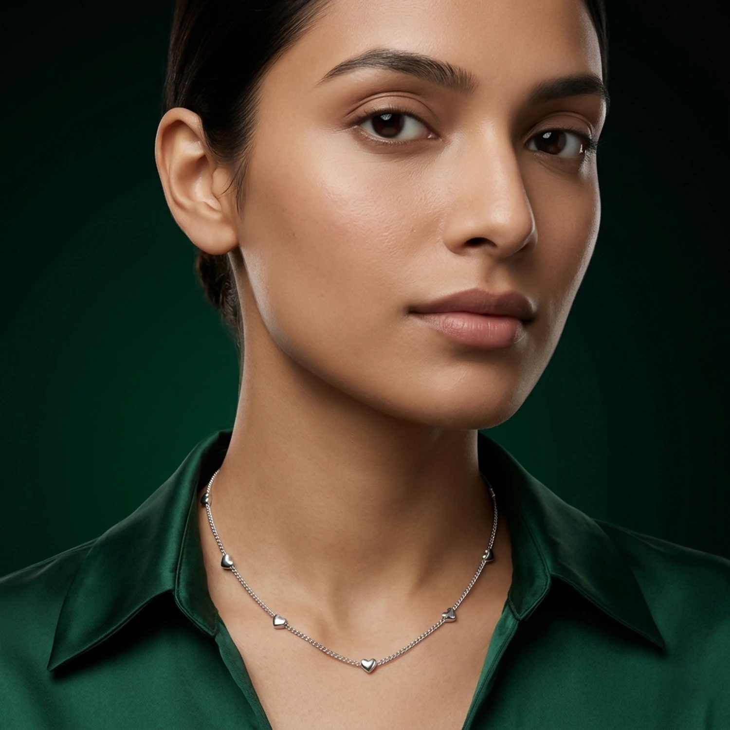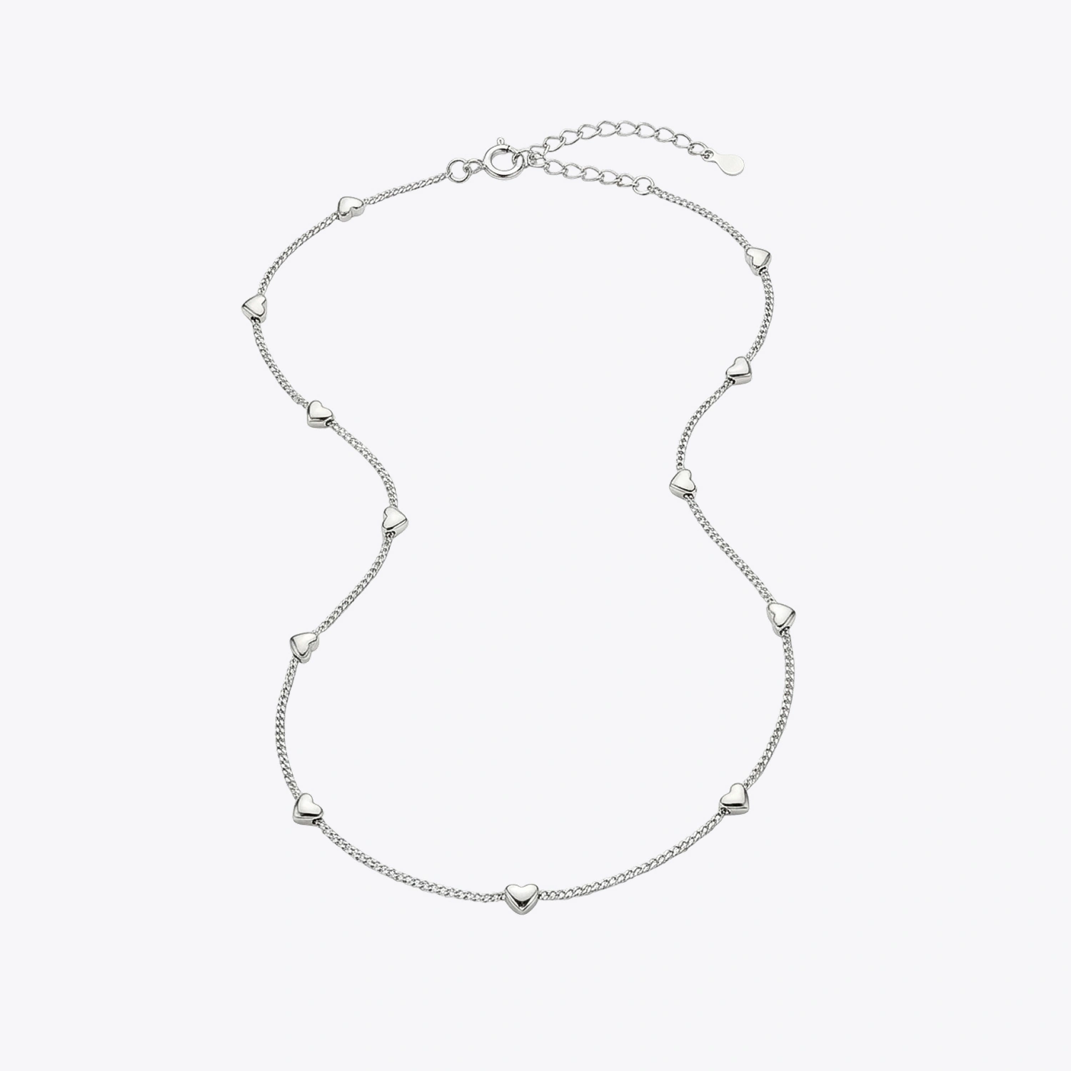 The Endless Love Heart Station Necklace is a delicate 925 sterling silver chain adorned with multiple polished heart charms, creating a romantic and timeless everyday piece.