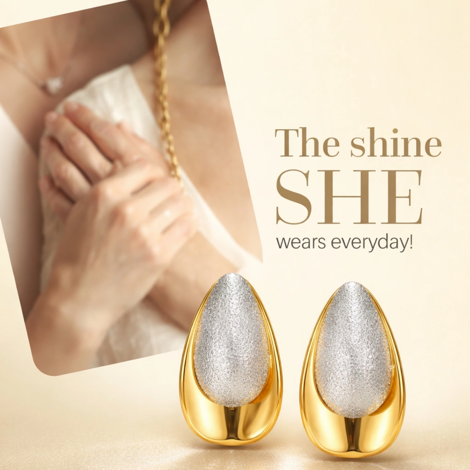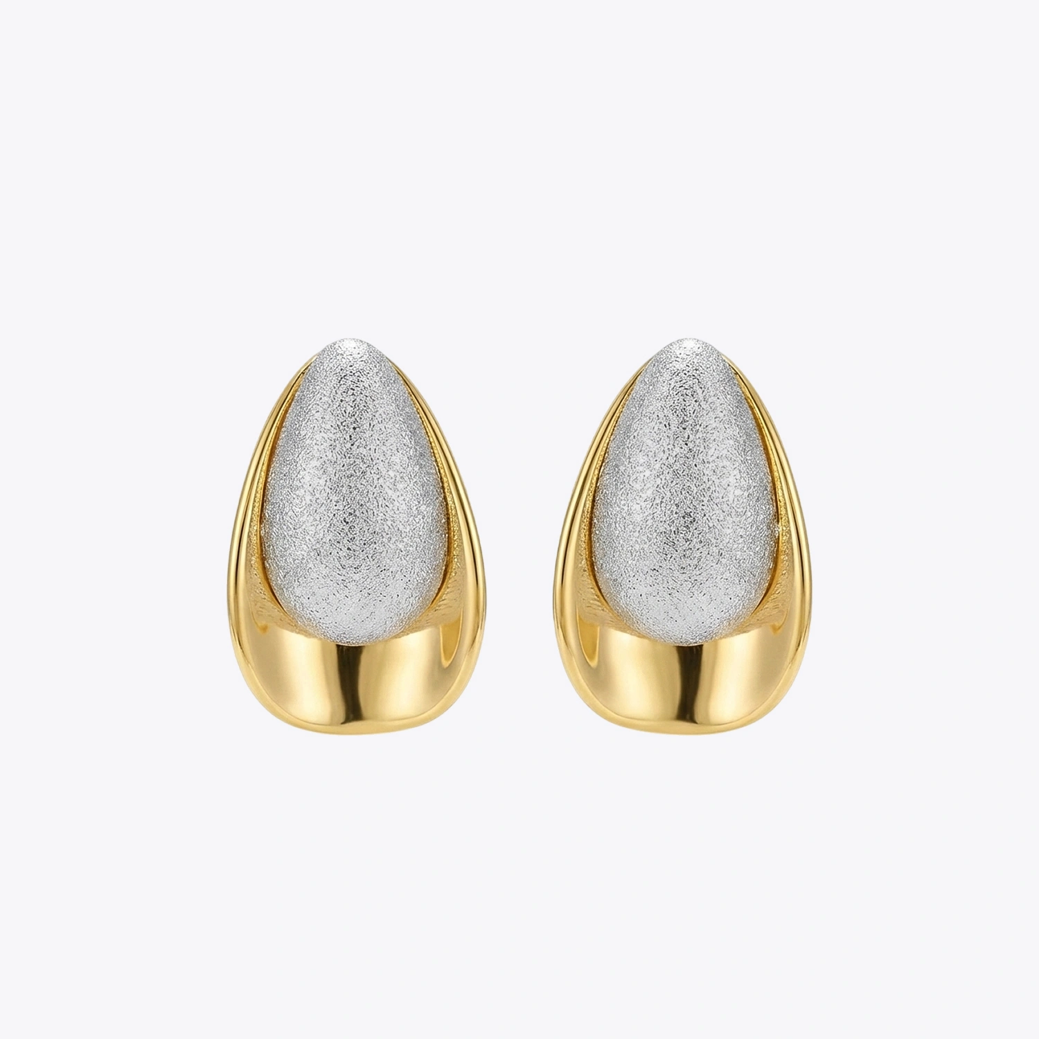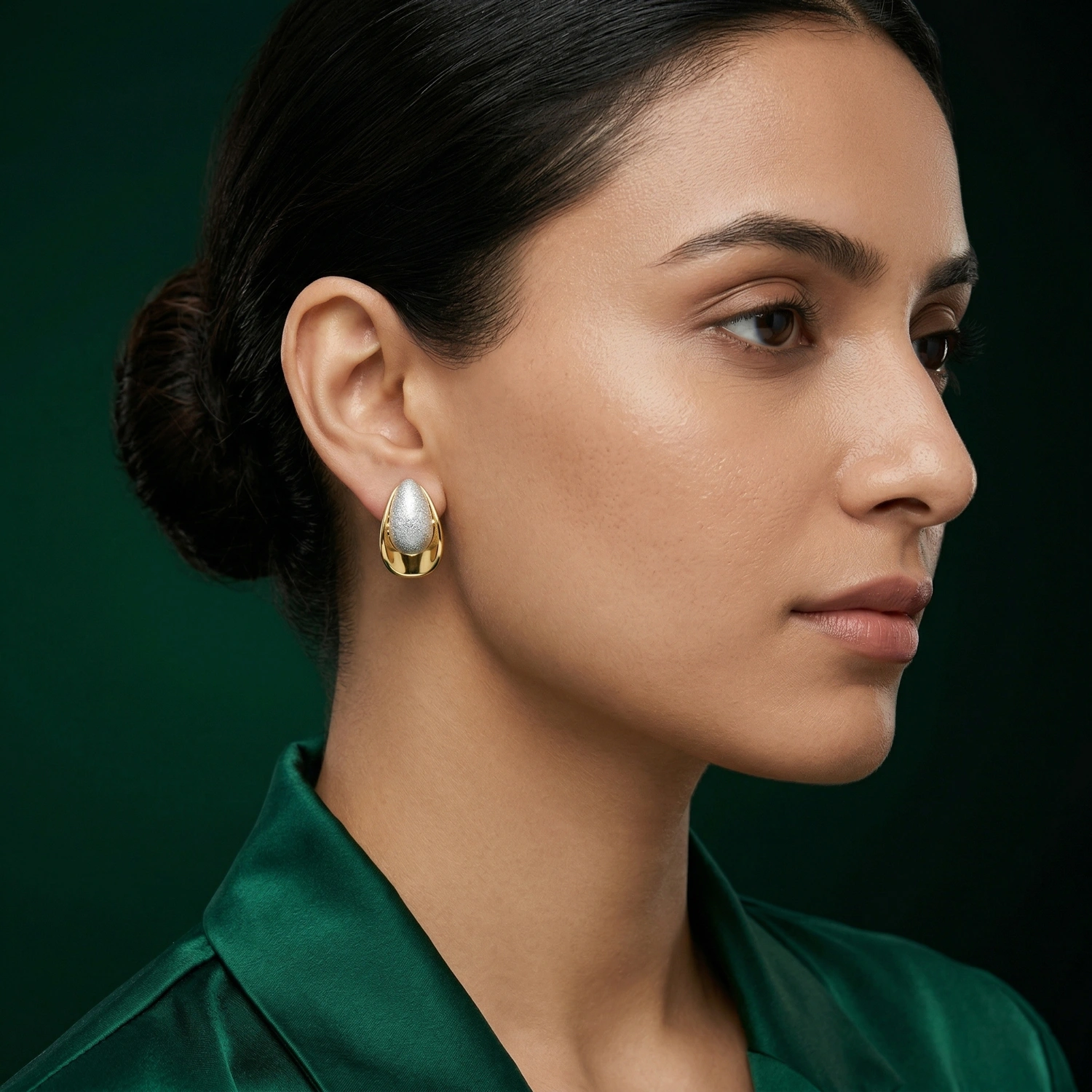 The Ethereal Teardrop Two-Tone Studs are elegant 925 sterling silver earrings featuring a sculptural teardrop design with a refined mix of matte and high-polish finishes.