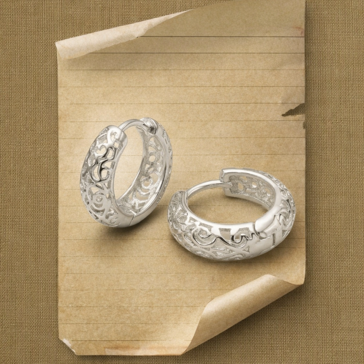 Be the first to review “Filigree Lattice Silver Huggie Hoops”