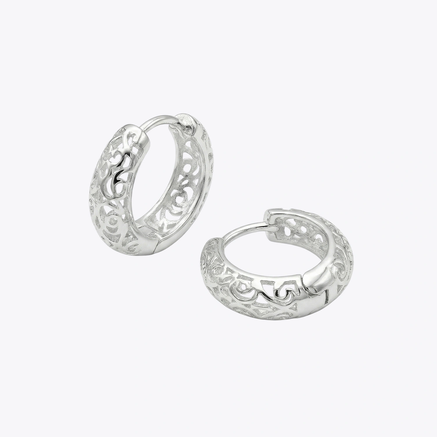 Filigree Lattice Silver Huggie Hoops