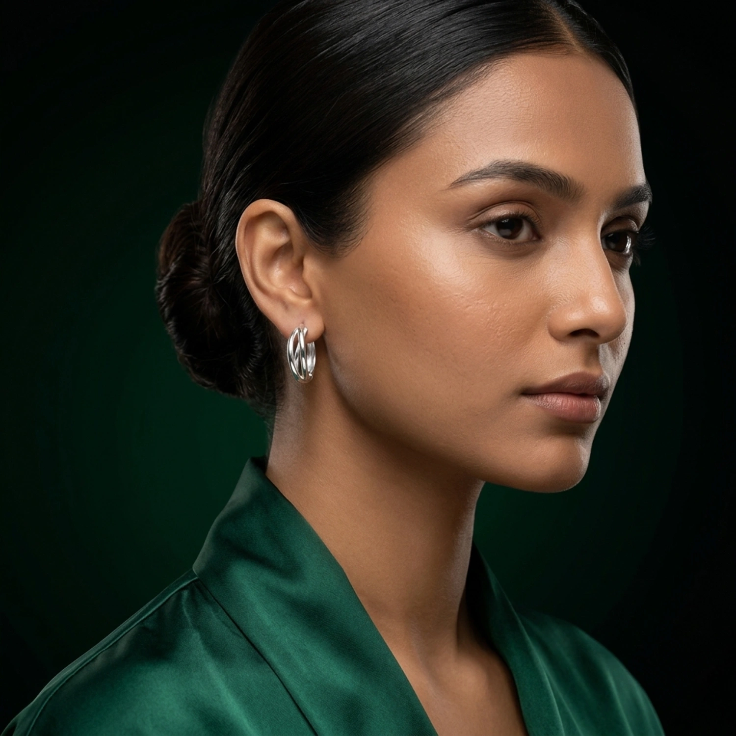 You're viewing: Intertwined Silver Huggie Hoops Original price was: ₹4,999.00.Current price is: ₹3,999.00.