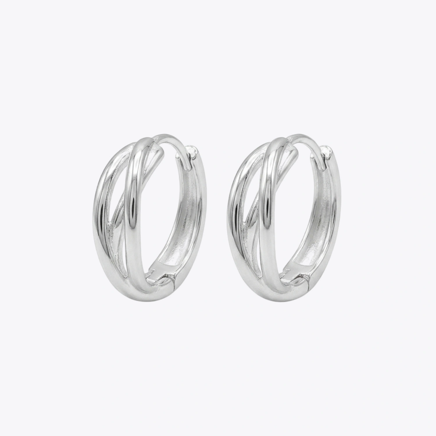 A sophisticated pair of 925 silver earrings featuring a unique multi-band crossover design for a layered look.