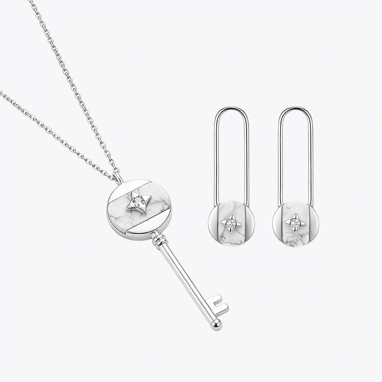 The clean geometric crystal structure paired with the soft glow of the pearl gives this set a perfect balance of contemporary glamour and classic charm. Finished in high-polish 925 sterling silver, every detail is crafted to enhance brilliance while maintaining an effortlessly elegant look.