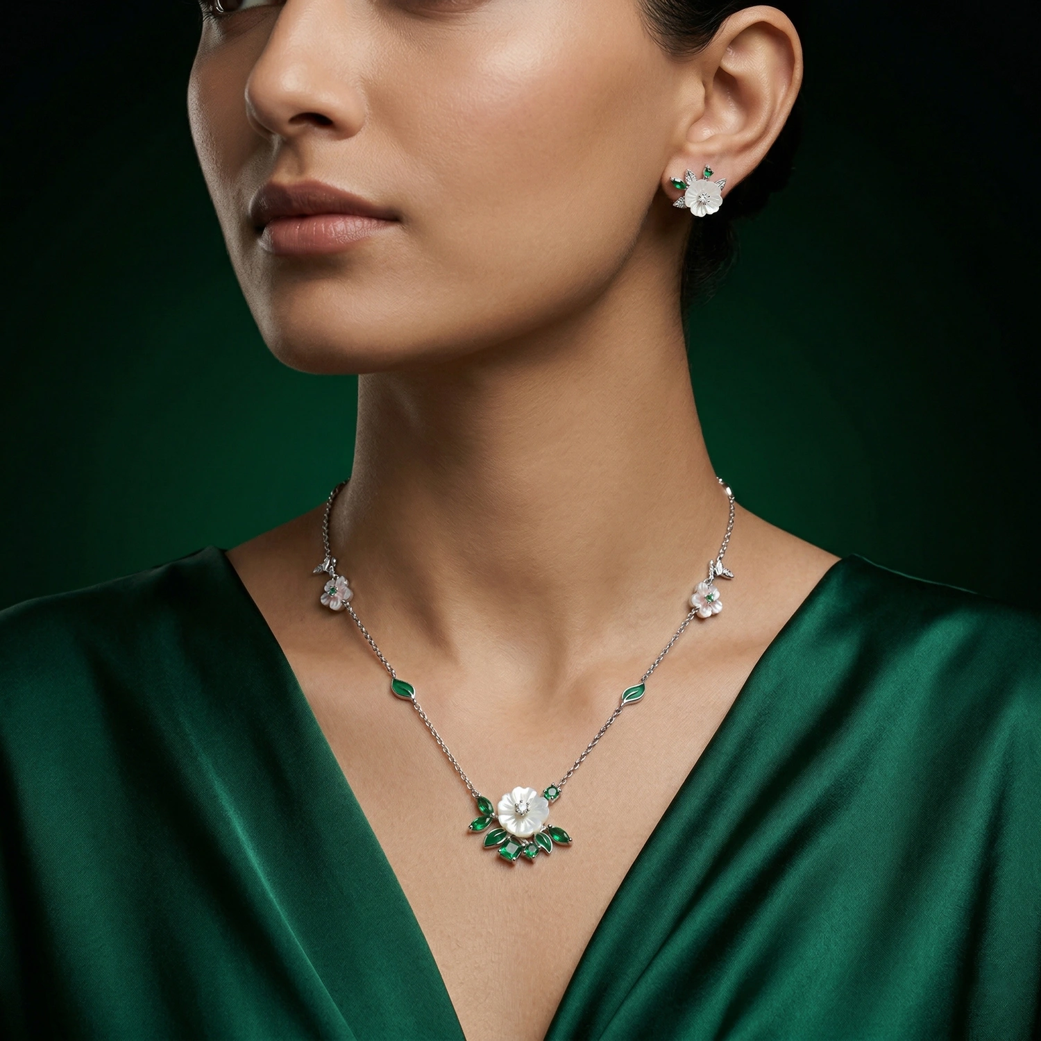 Wear this set with a silk blouse, sweetheart neckline, satin dress, or elegant saree to let the pearl drop sit beautifully against the skin. Its graceful silhouette makes it ideal for both bridal elegance and sophisticated evening glamour.