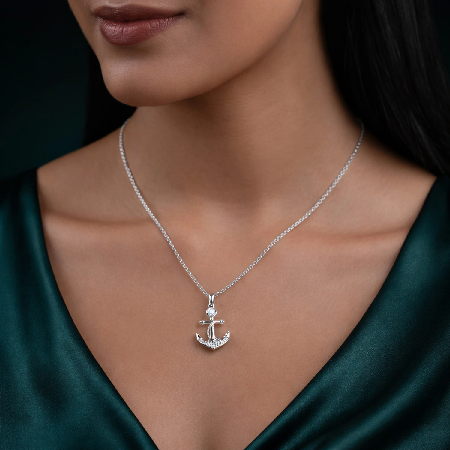 A classic maritime symbol of stability and hope, crafted in premium 925 silver with elegant stone accents.