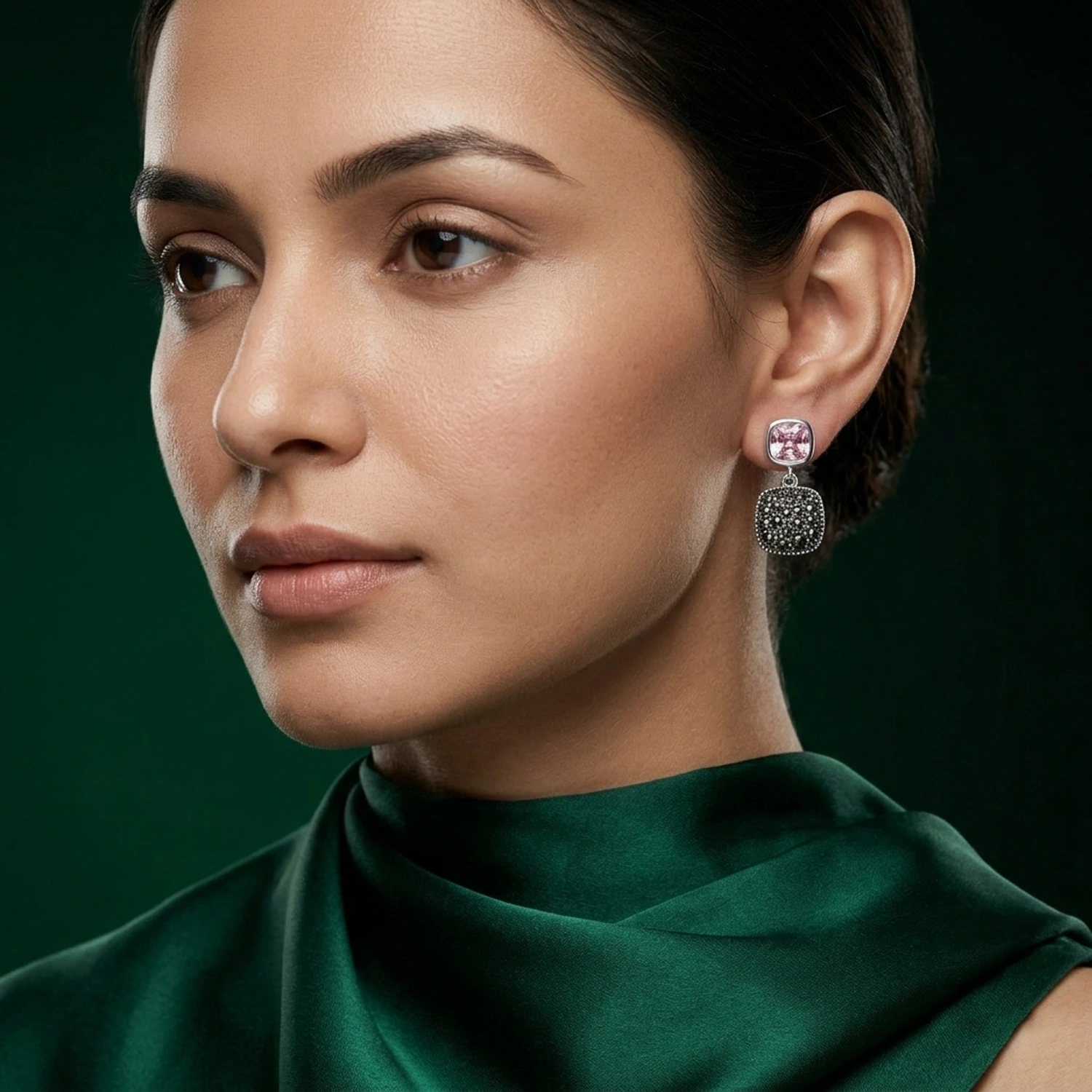 The Moonlight Sphere Drop Earrings are elegant 925 sterling silver earrings featuring a sleek oval hoop paired with a beautifully textured, frosted metallic sphere.