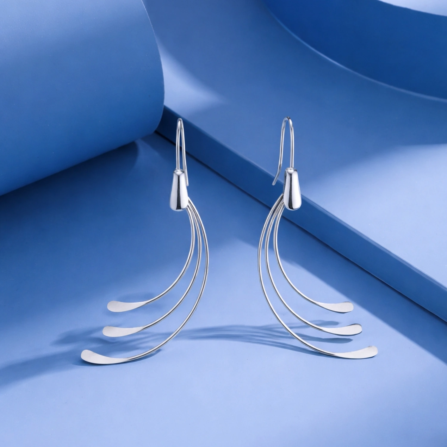 Handcrafted in premium 925 sterling silver, these earrings feature a graceful triple-layered swept design that mimics fluid motion.
