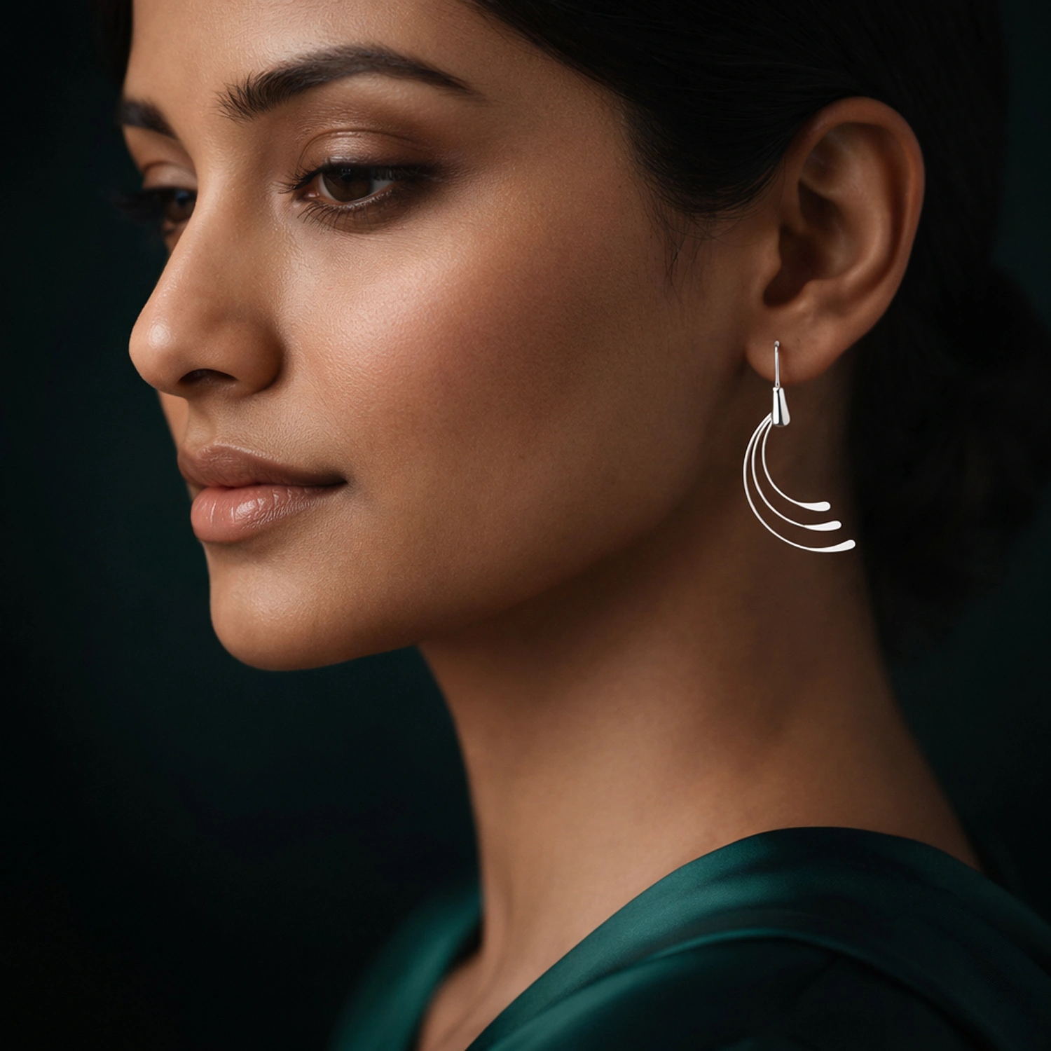 The Silver Triple-Arc Drop Earrings are handcrafted 925 sterling silver earrings featuring a graceful multi-layered arc design inspired by fluid motion.