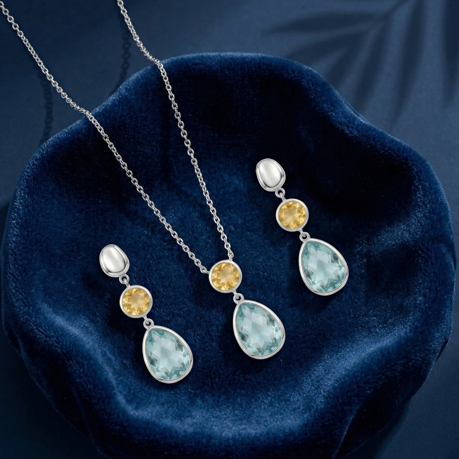 Perfect for brunch dates, office wear, daytime celebrations, weekend outings, or simply adding a cheerful touch to your daily wardrobe, this gemstone set brings color, charm, and effortless sophistication.