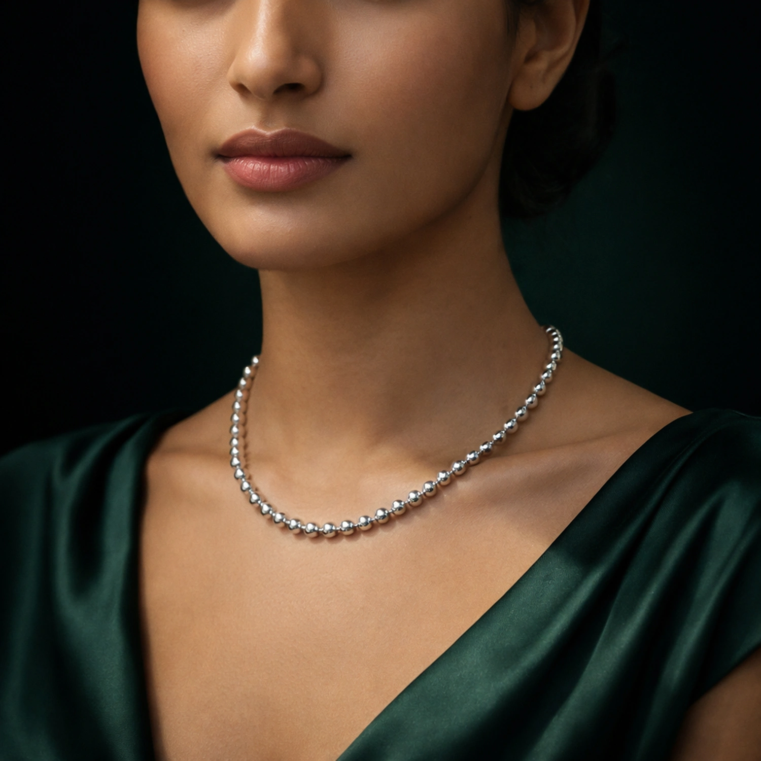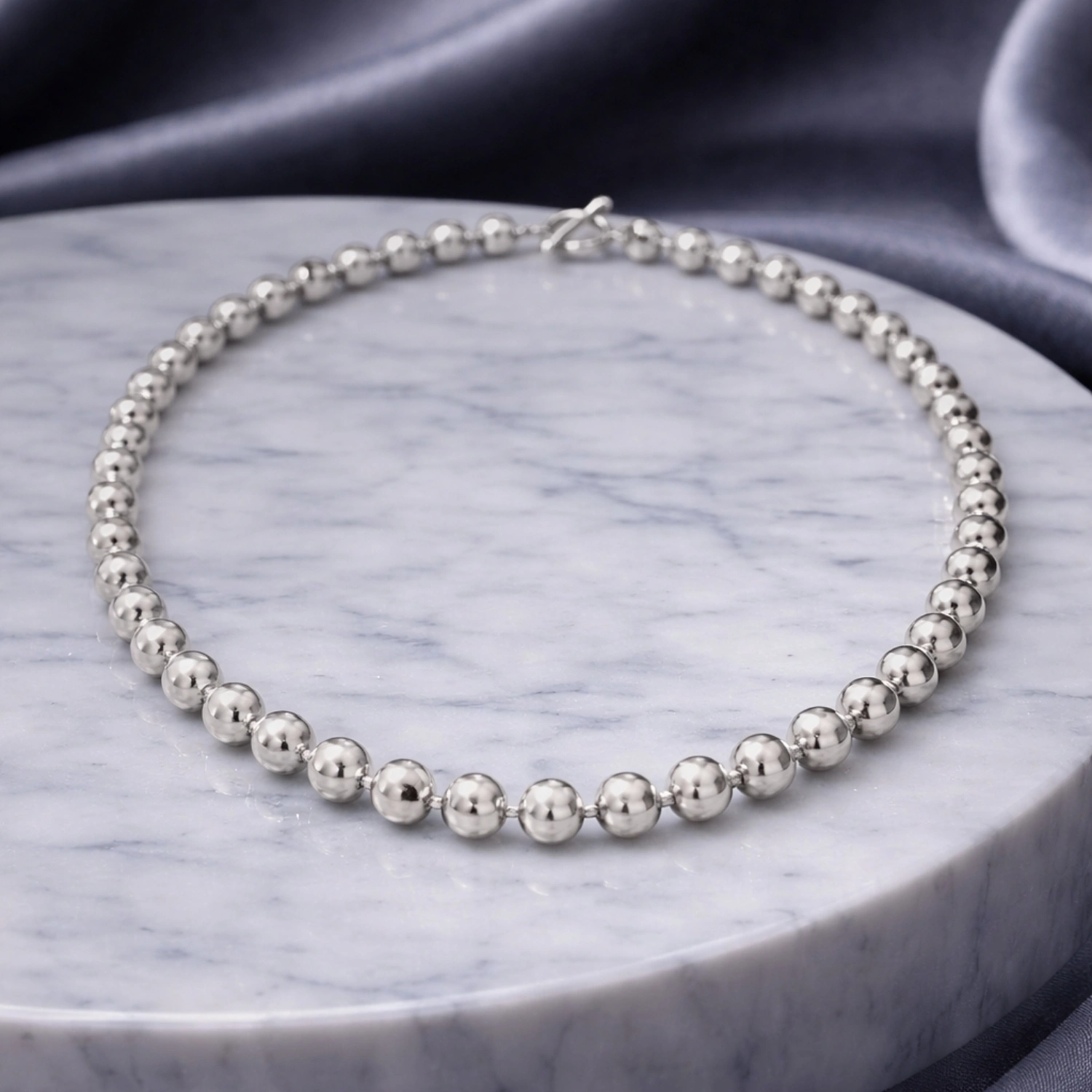 A sophisticated and modern take on the classic bead necklace, crafted from premium 925 sterling silver for a high-shine, luxurious finish.