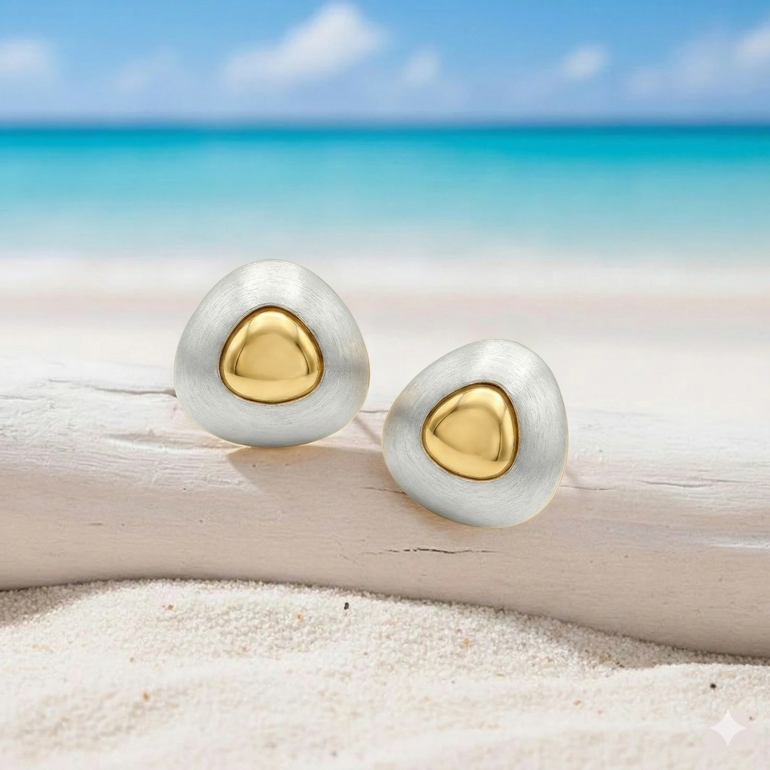 Modern triangular studs crafted in 925 sterling silver, featuring a soft, rounded silhouette with a dual-tone finish.