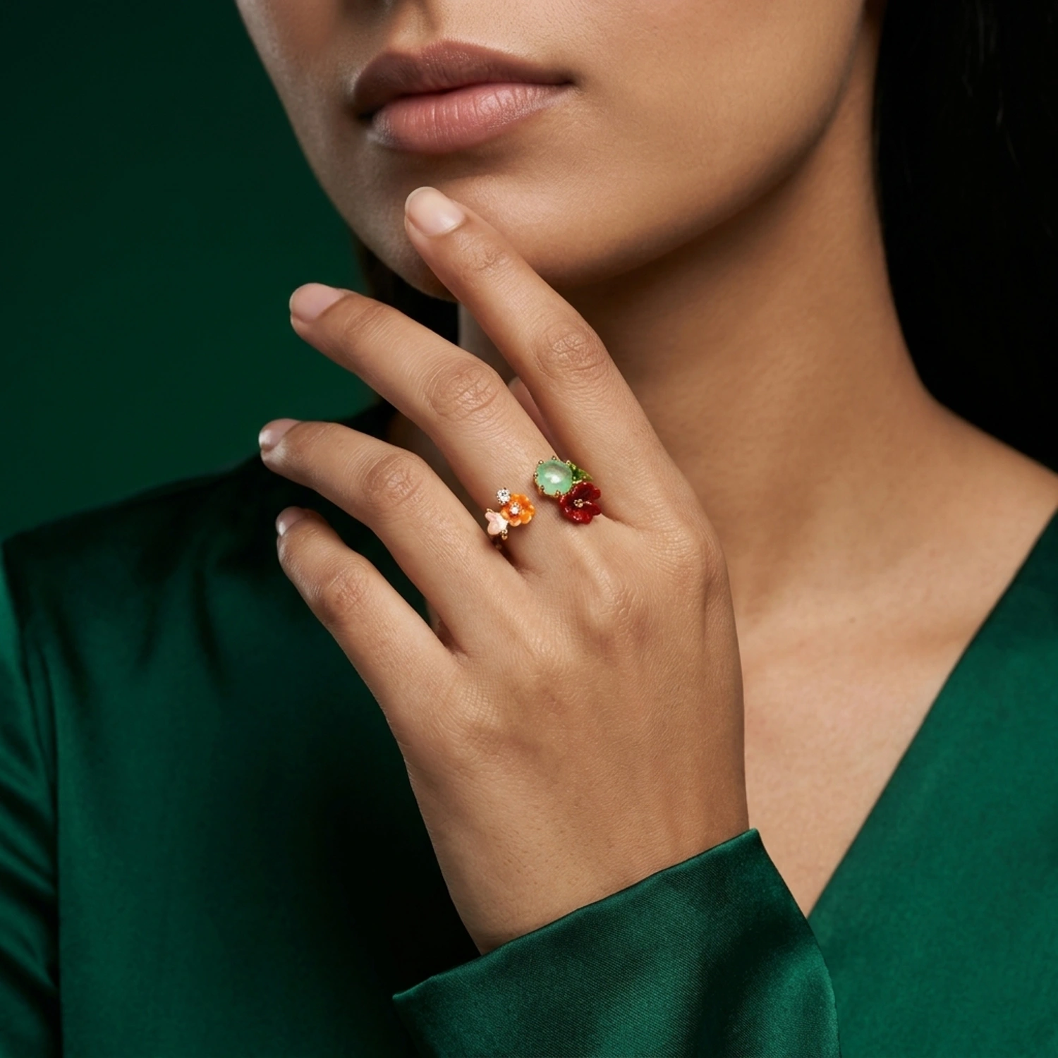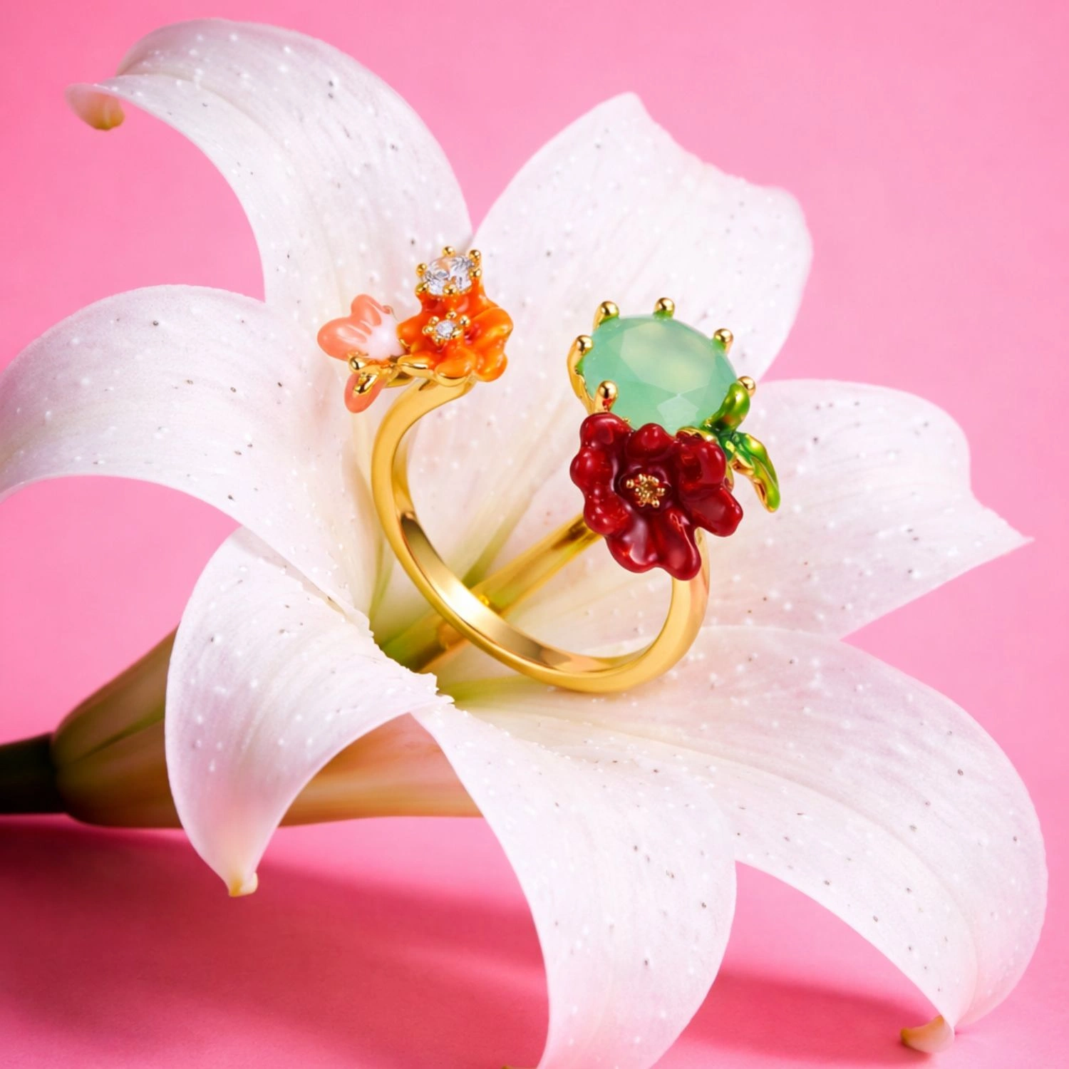The Eden Bloom Open Ring is a captivating gold-plated 925 sterling silver ring featuring a vibrant floral design with colorful enamel work, bringing a joyful and artistic touch to your jewelry collection.