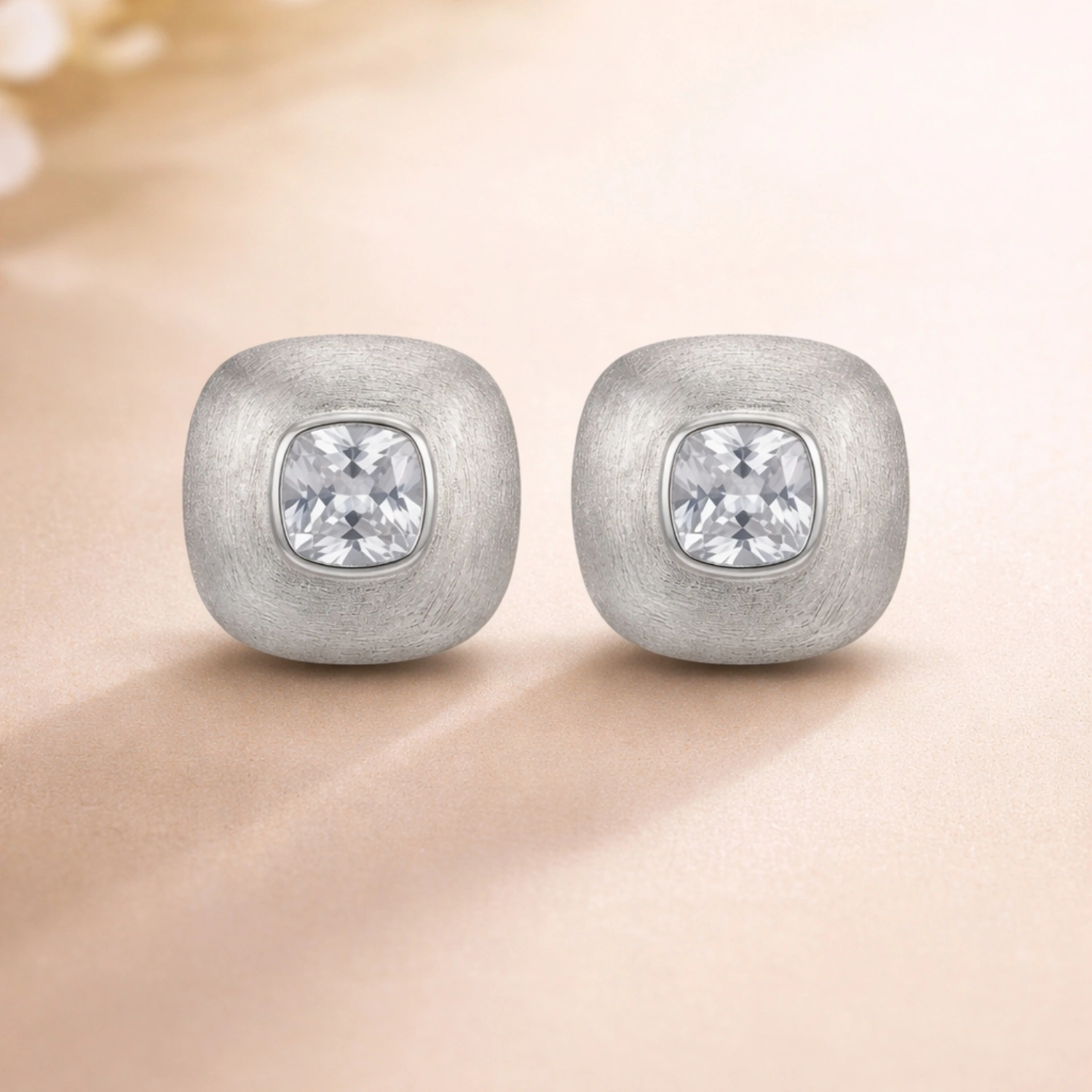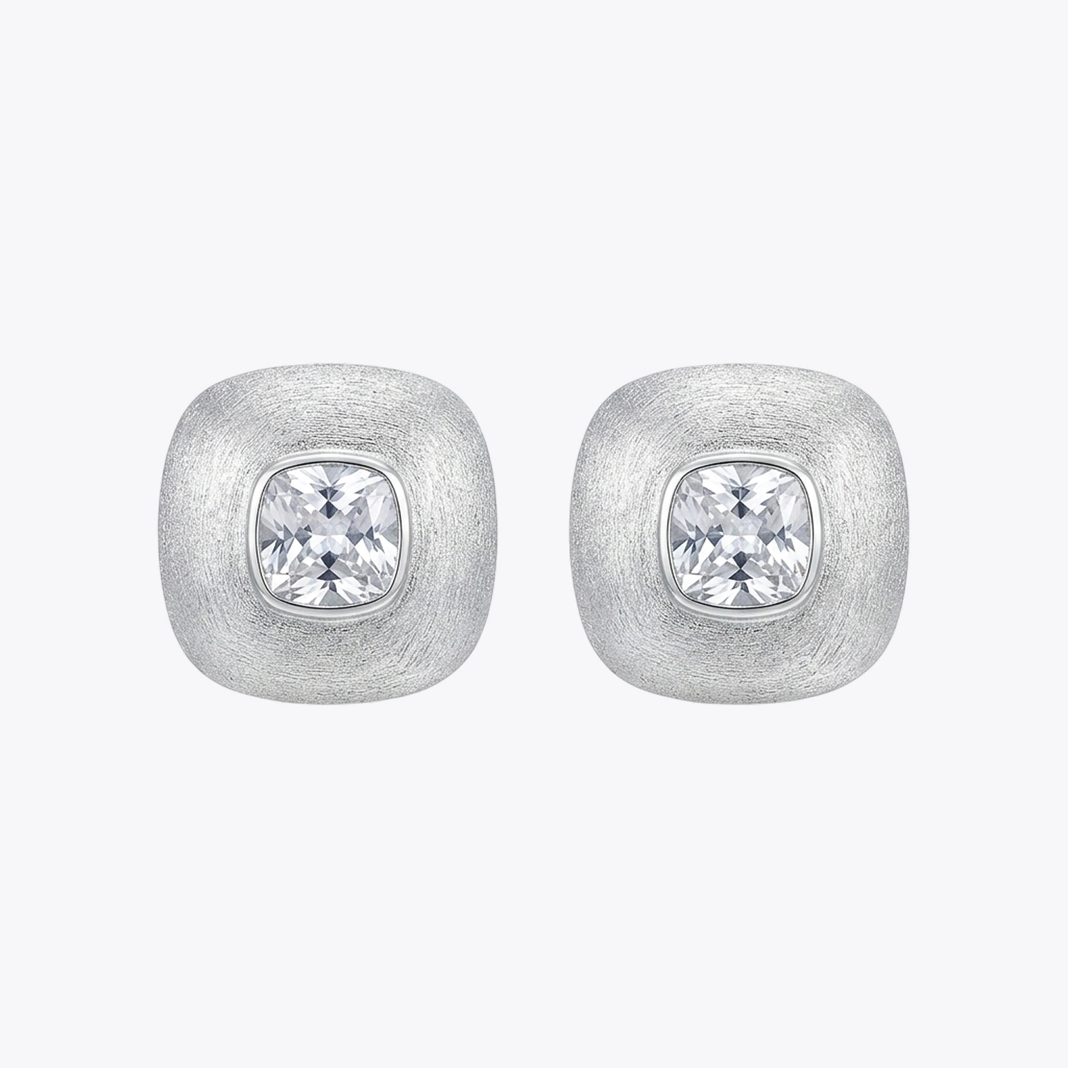 Elegant cushion-shaped studs in 925 sterling silver, centering a brilliant faceted crystal for a touch of icy glamour.