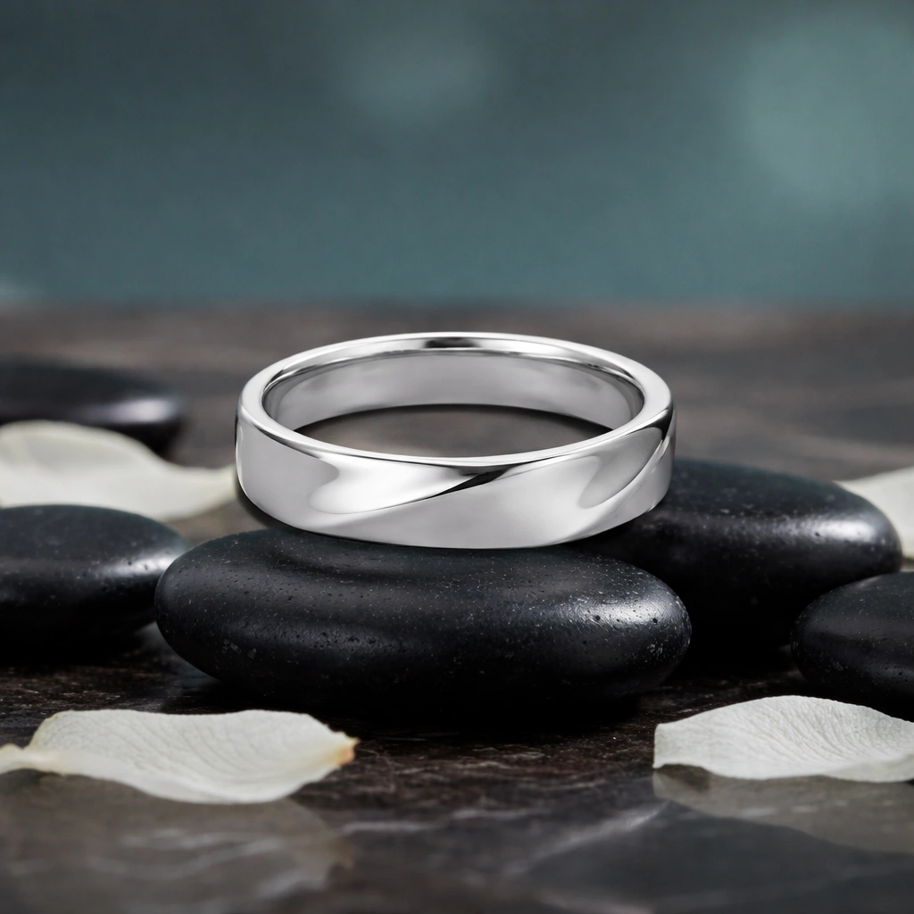 A sophisticated 925 sterling silver band featuring a subtle, fluid twist that adds modern dimension to a classic silhouette.