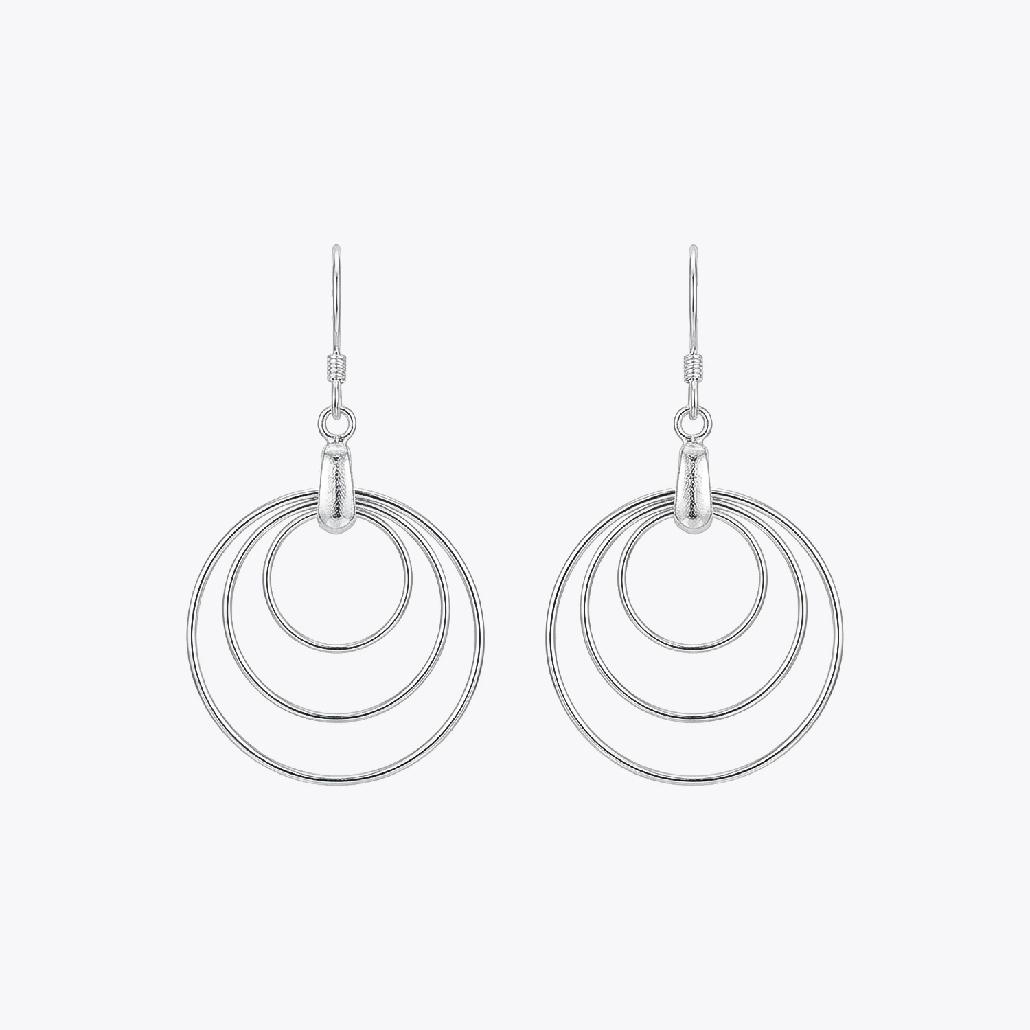 Graceful drop earrings in 925 sterling silver featuring three concentric wire circles that create gentle, airy movement.